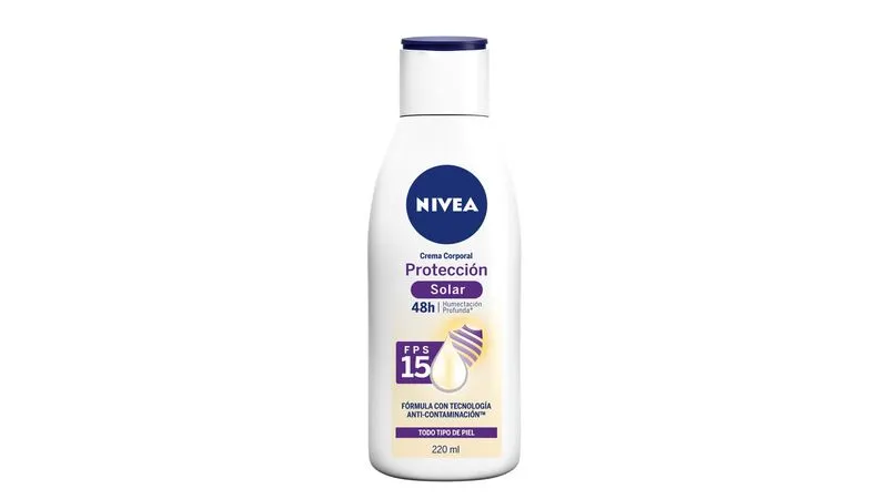 La Crema NIVEA® Protección Solar FPS 15 brinda protección efectiva contra los rayos UVA y UVB, ayudando a prevenir el daño solar y el envejecimiento prematuro de la piel. Su fórmula está diseñada para ofrecer una protección moderada, ideal para el uso diario y exposiciones solares de corta a media duración.
